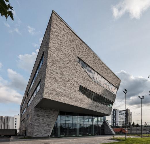 Архитектурный проект для ГК «ТРЕСТ» разрабатывало бюро FUTURA-Architects. Динамичная и в то же время футуристичная форма здания с наклоном и скругленным углом делает объект акцентом района. Такой образ появился не случайно — он вдохновлен гладкими валунами побережья Финского залива, которые столетиями обтачивались стихиями.