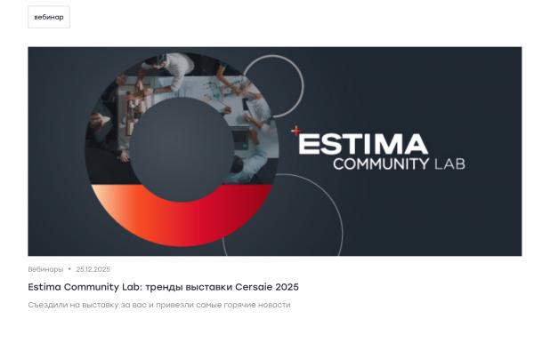 Для удобства архитекторов и дизайнеров на официальном сайте Estima появился новый раздел «Вебинары». Теперь все материалы собраны в едином архиве, что позволяет не привязываться к графику прямых трансляций и изучать темы в комфортном темпе.
