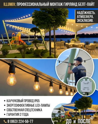 Одним из последних знаковых проектов стал монтаж контурной подсветки торгового центра в Ростове-на-Дону. Использование гибкого неона холодного свечения позволило не только выделить здание на фоне городской застройки, но и подчеркнуть его архитектурную геометрию.